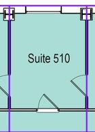 A corner suite just off the elevator, featuring an L shape and mid wall door permitting interior access to the adjacent office. Approximately 430 SF